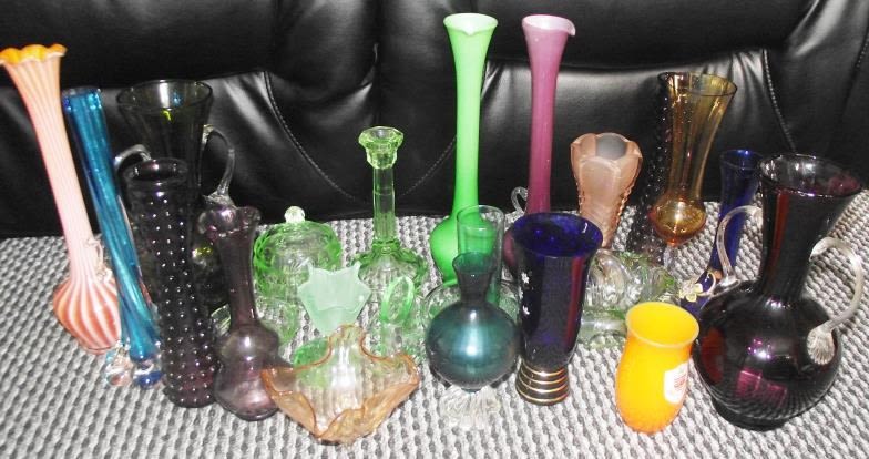 Collection of studio glass inc. Tall hand blown vases , dressing table items etc.(25)