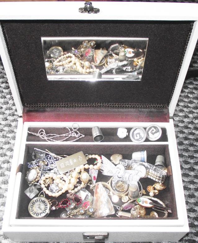 1 finger ) + engraved Victorian thimble + art deco plated Everite watch + plated items, alpaca silver earrings, 935 silver chain etc.