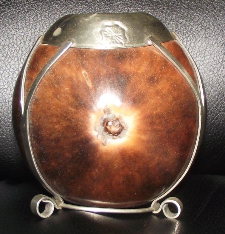 Unusual 4 “ large horse chestnut seed formed as a vase surrounded in a white metal mount stamped with