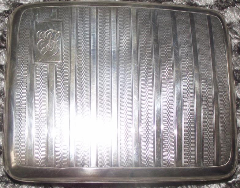 Silver engine turned engraved cigarette case Henry Mathews Birmingham 1926 106g approx.
