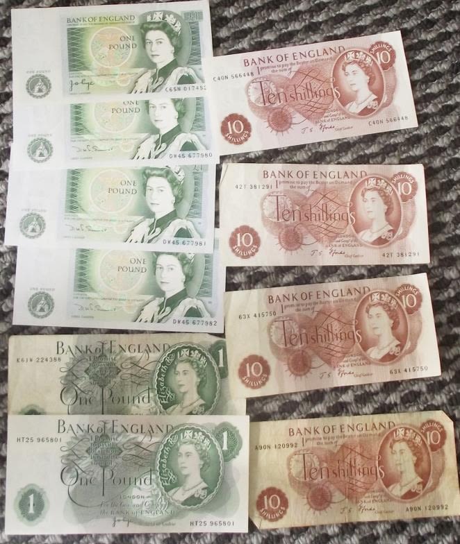 Collection of old bank of England bank notes inc.6x £1 notes 4x ten shilling notes