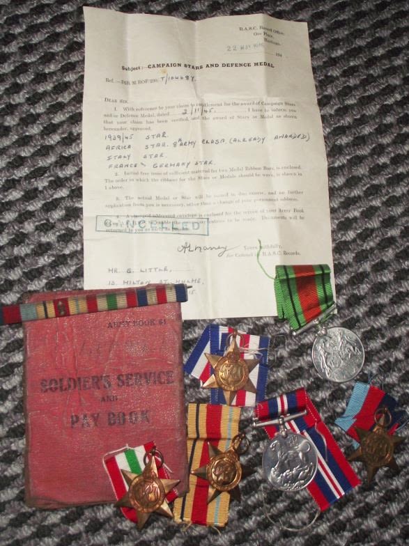 1939/45 defence medal 1939/45 medal 8th Army clasp and Ribbons paperwork , soldiers service book webb
