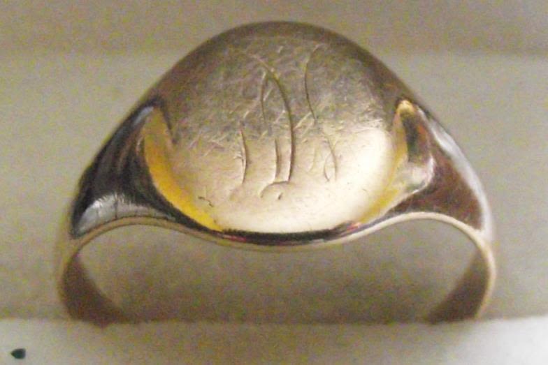9ct gold gent’s oval engraved signet ring 3.5g approx. size Q