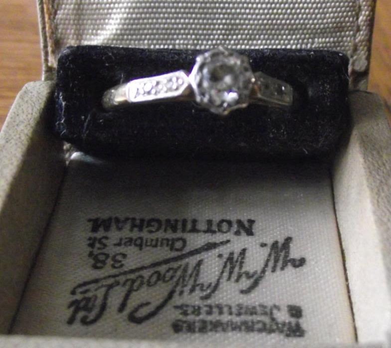 18ct platinum set single stone old cut diamond ring with 2 smaller stones on each shoulder 2.5g