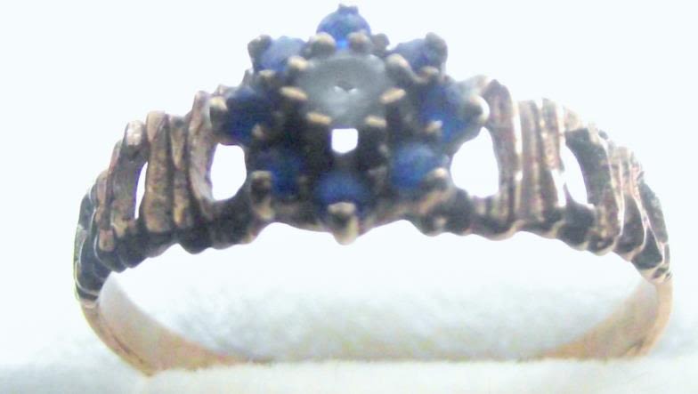 Ladies 9ct diamond and sapphire flower head set ring size P
