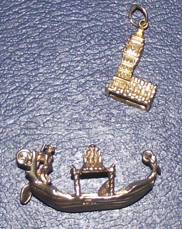 2x 9ct gold charms (Big Ben & Gondola) 10.9g approx.