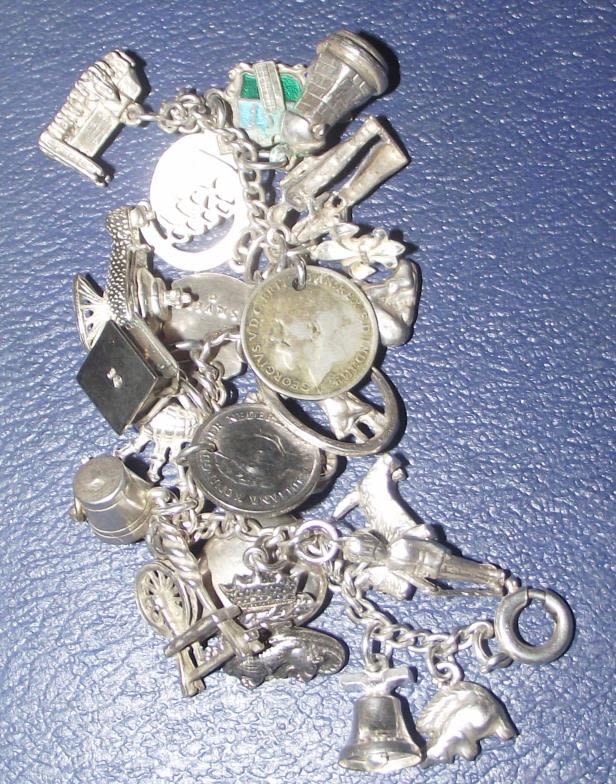 Silver charm bracelet with charms some marked silver some unmarked 43.5g