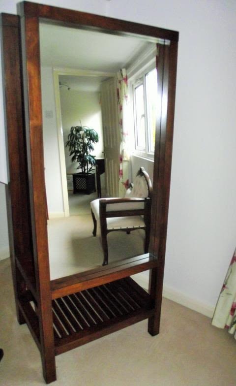 Reproduction large Wills & Gambier Kerala free standing full length bedroom mirror with slatted shelf