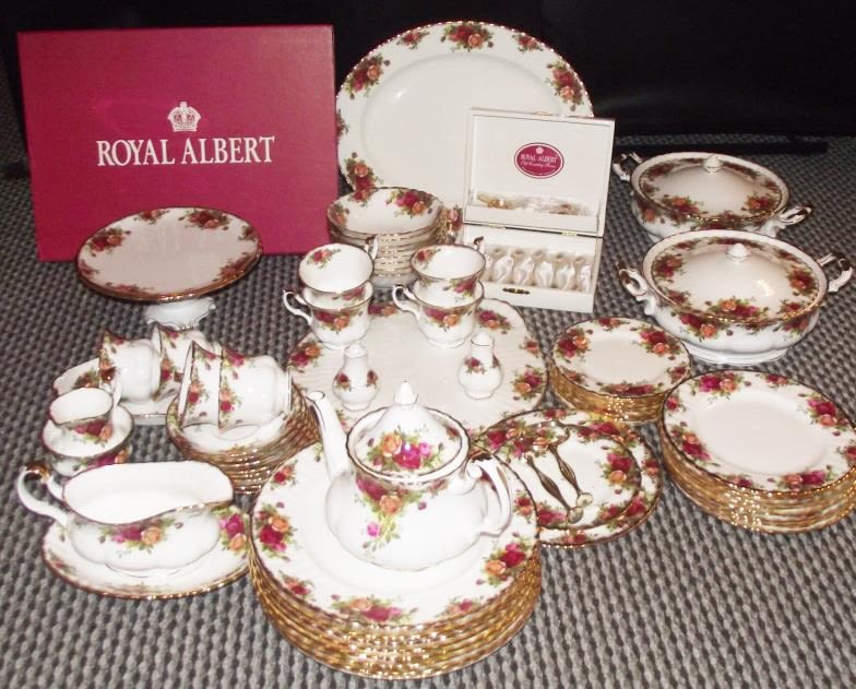 saucers, cake stand etc. 63 pieces In total + cased set spoons and cased set of dinner mats to match