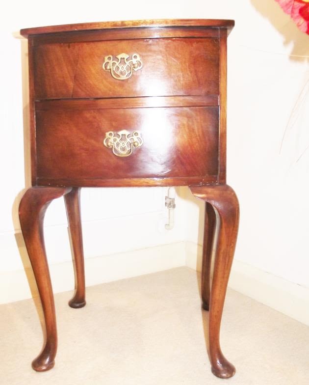 2 draw mahogany bedside table raised on cabriolet legs with pad feet