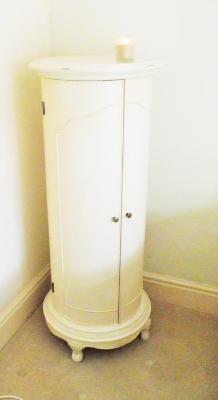 Wooden White painted circular bedroom storage unit with internal draws