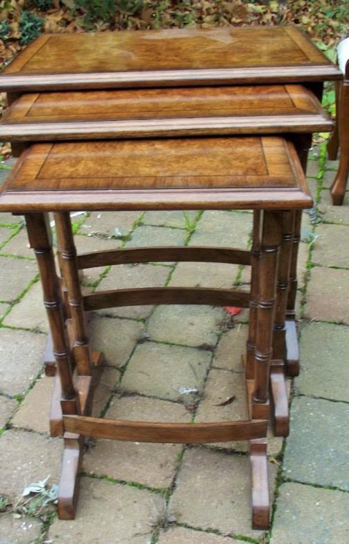 Nest of 3 reproduction side tables with bamboo style legs