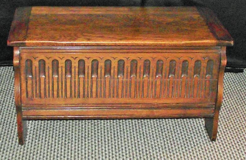Small priory style carved oak lidded chest size