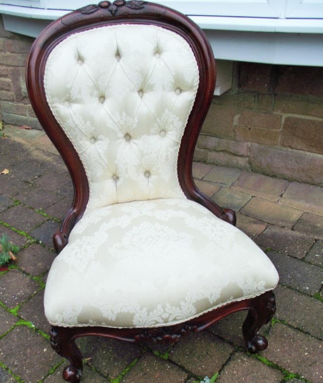 Lovely carved high backed button back nursing chair