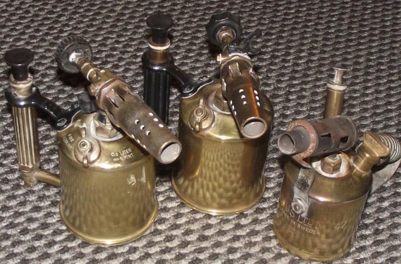 3x good condition vintage brass blow lamps