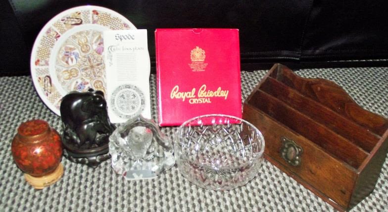 Mixed lot Inc. Spode ( The Iona plate ) Brierley crystal bowl Inscribed Brierley underside + antique