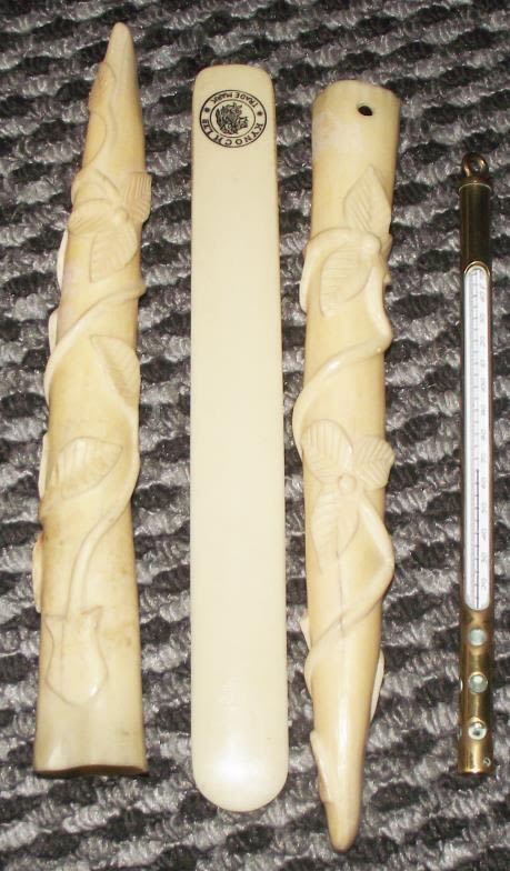 vintage moulded page turner made by Kynoch Ltd + vintage brass encased dip thermometer ( working)