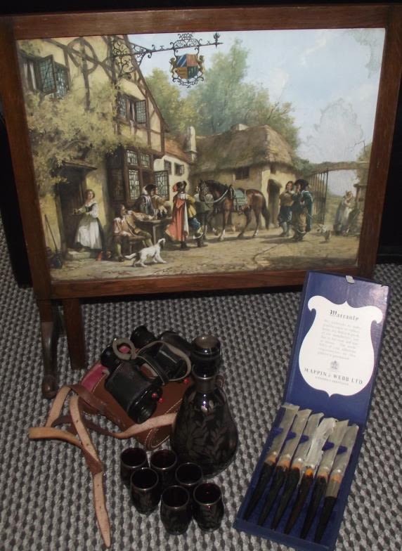 Vintage Folding table picture screen + Vintage Murano shot decanter and glasses + boxed Mappin & Webb