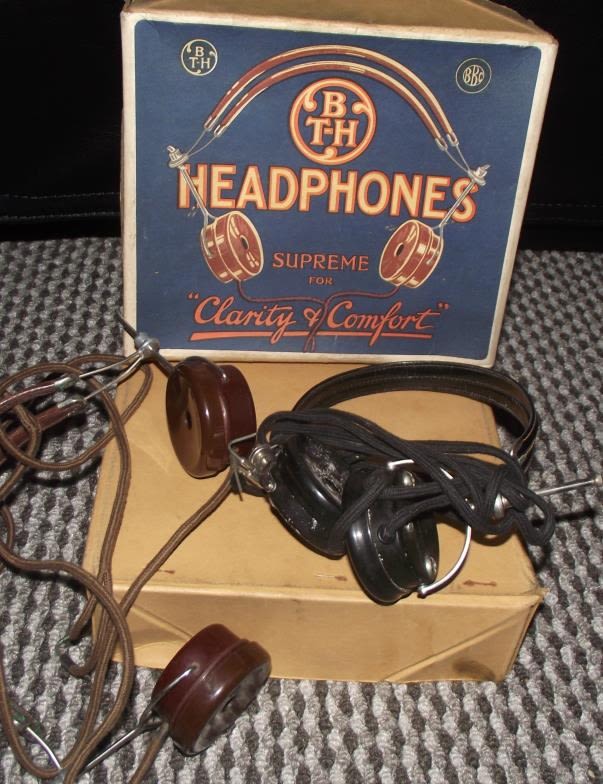 Rare pair of BBC- BTH Bakelite headphones + pair of vintage German SABA 2×2000 headphones in original