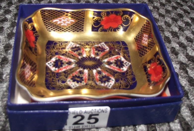 Boxed Royal Crown Derby 1128 Old Imari Solid Gold Band Trinket Dish