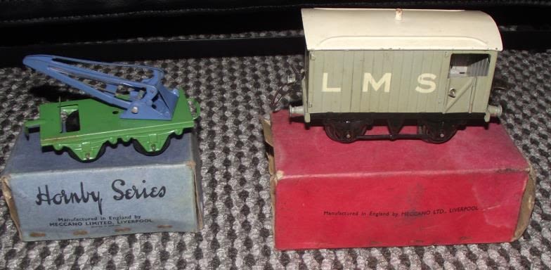 Hornby o Gaige LMS brake van in original box + Hornby o gauge Mo crane truck in original box