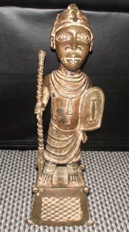 Good heavy bronze examples of an African Benim warrior figure 20” approx.