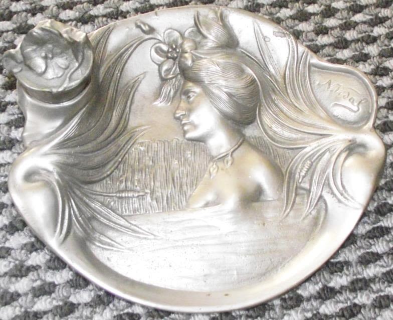Art Nouveau style ink well /pen stand with embossed design impressed signature N. Vidal