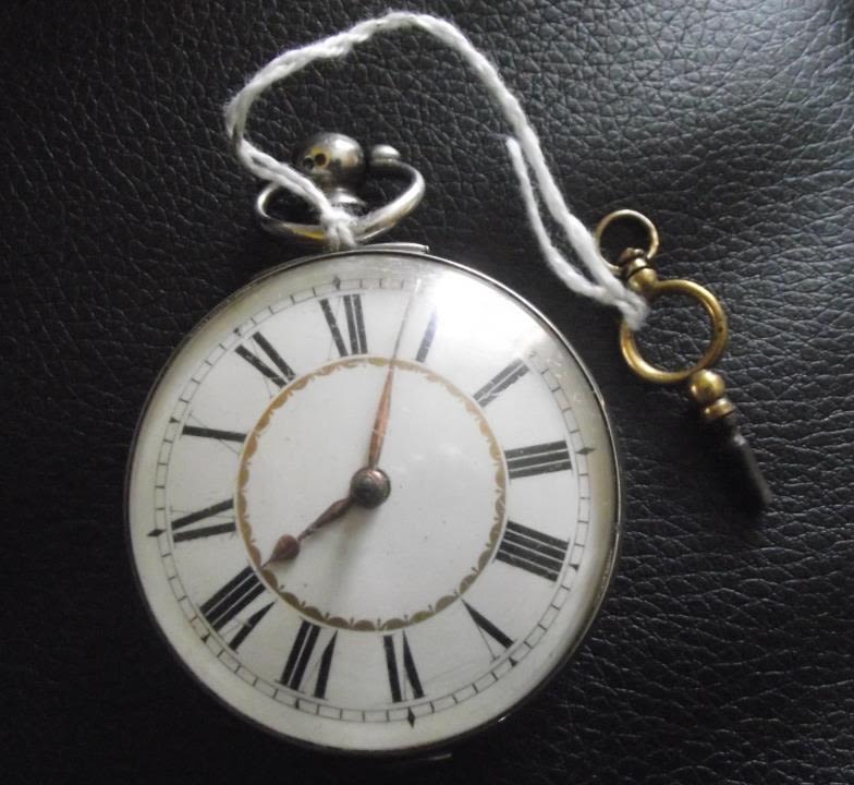 Silver fusee pear cased pocket watch , white enamel face with roman numerals movement by William