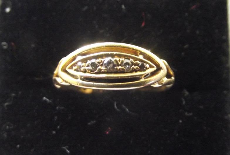 Beautifully designed 18ct gold J size Diamond set ladies ring. set with a row of 5 graduated diamonds