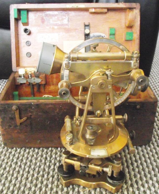 Cased Vintage brass theodolite by Cooke, Troughton & Simms Ltd c1935 with all fittings Inc. plum bob