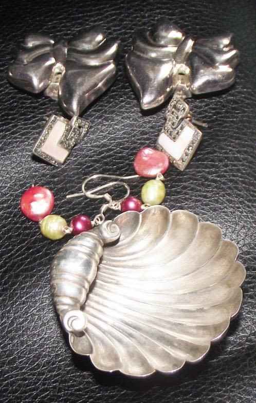 3 pairs of vintage silver earrings marked 925 + silver walker and hall Birmingham1895 shell shaped