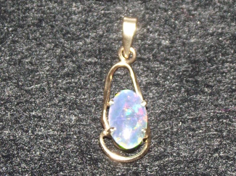 Quality ladies 9ct 375 Gold opal drop set pendant set in an open claw setting