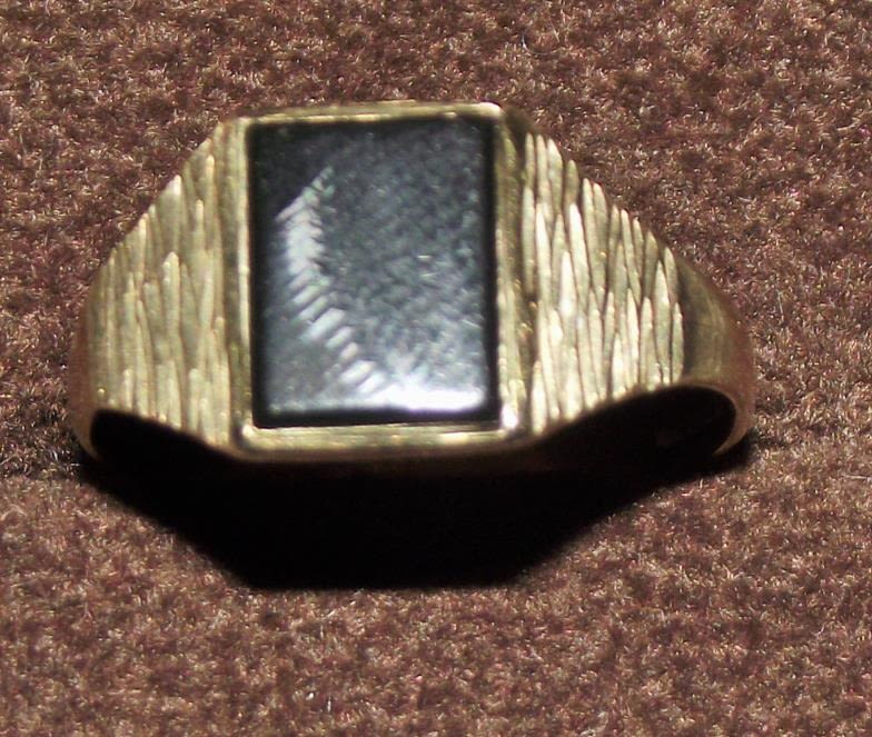 Gents 9ct gold signet ring set with square black central stone 2.5g approx. size T.