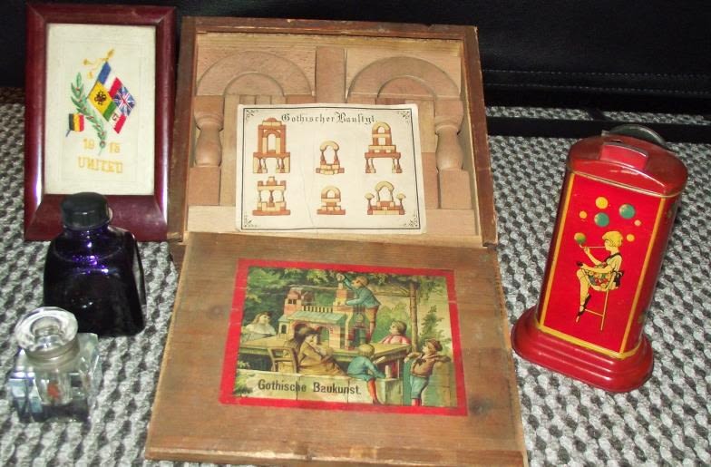 Mixed collectibles lot Inc. , Early 20th Century Cased German Building Blocks Gothische Baukunst -Gothic