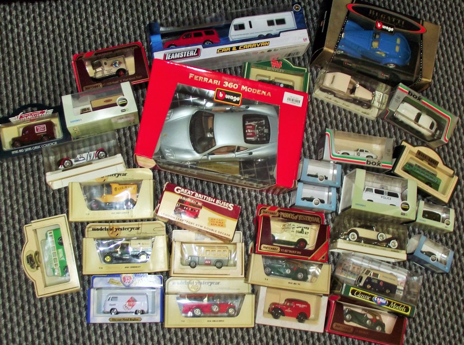Large collection of boxed assorted collectors vehicles inc. Burago , days gone by , Oxford commercials etc. ( 33)