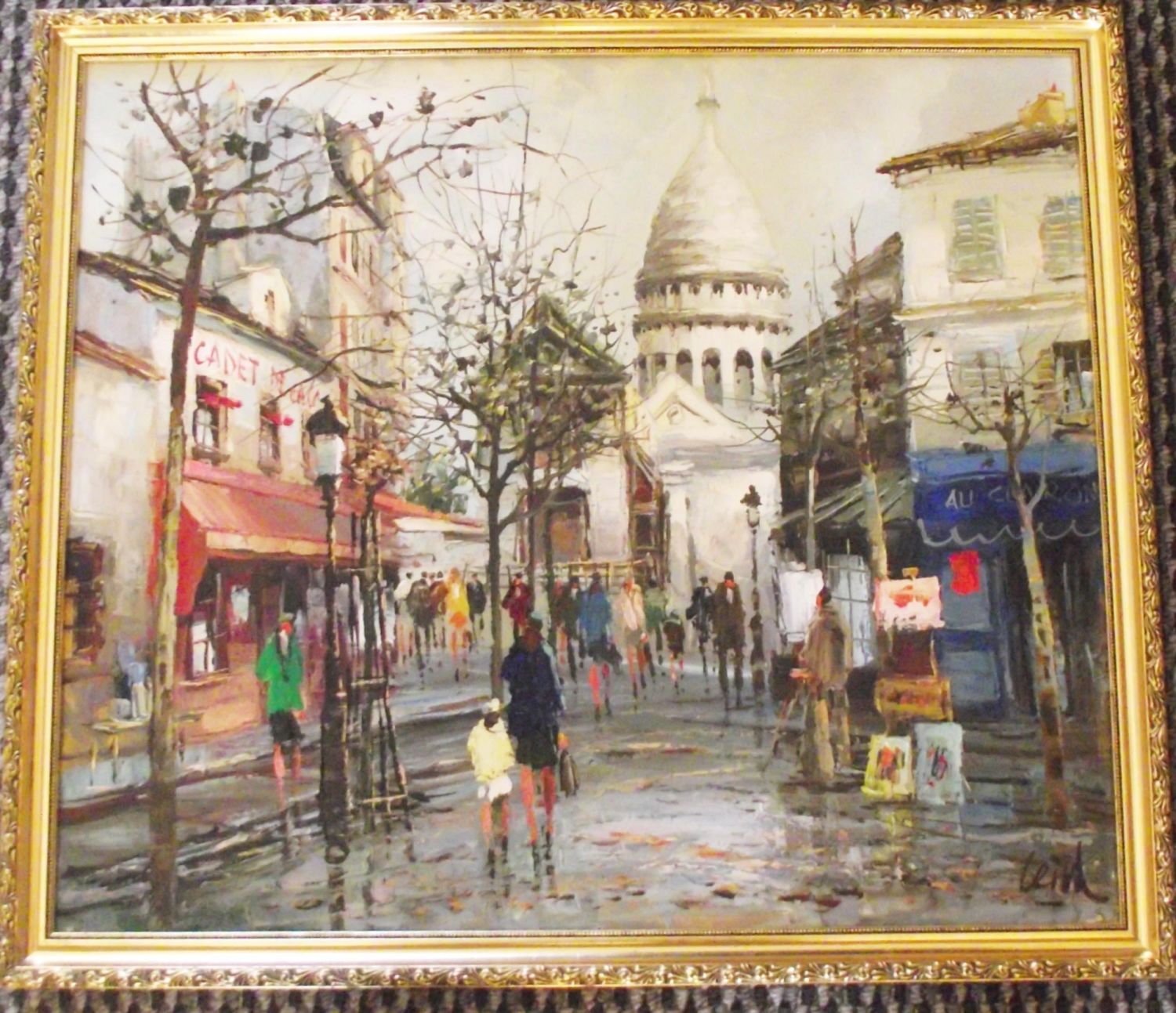Quality oil on canvas (Montmartre) signed Leiva bottom right . inscription to reverse (signed J L Leiva Montmartre Paris 1983)