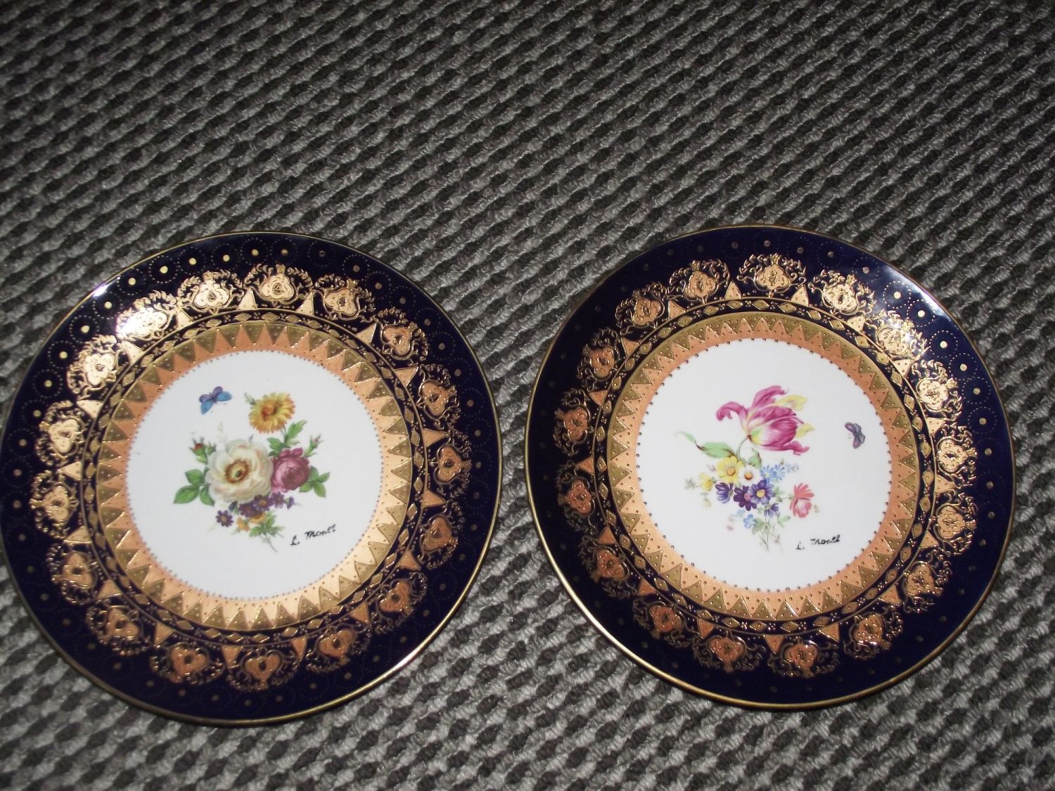 Superb pair of Sevres louis Phillipe style cabinet plates , hand painted floral centres with exquisite gilding on a royal blue background Signed L Monet .