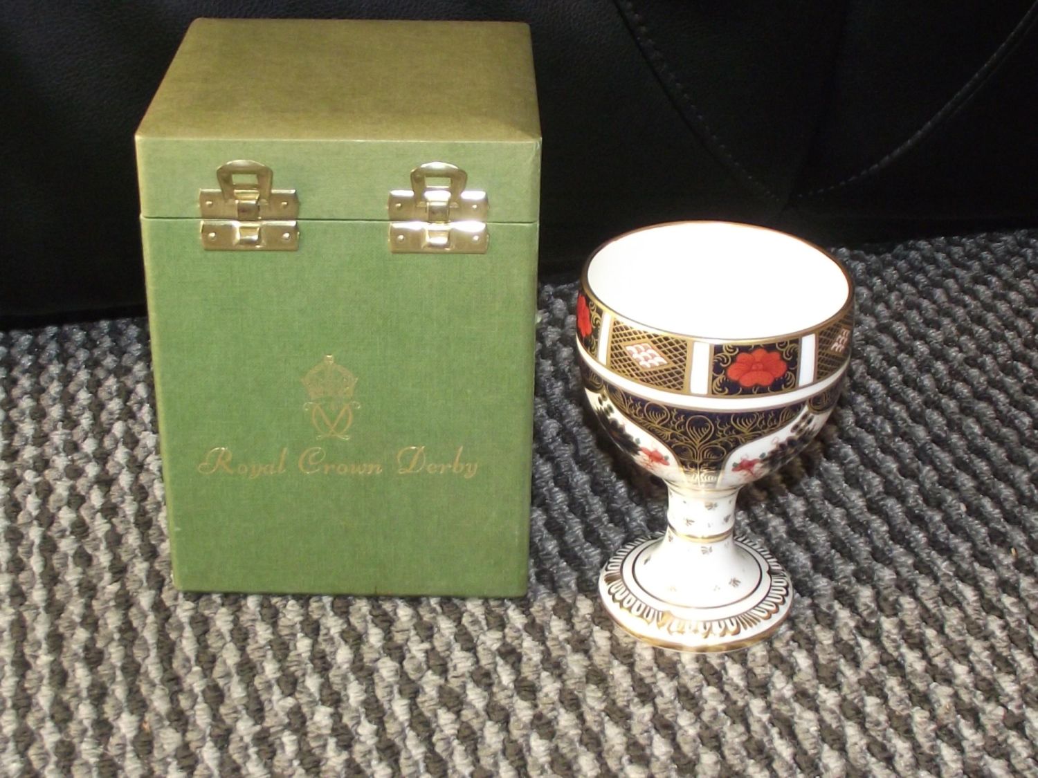 Royal crown Derby 1128 pattern1st quality goblet in original box 12cm high