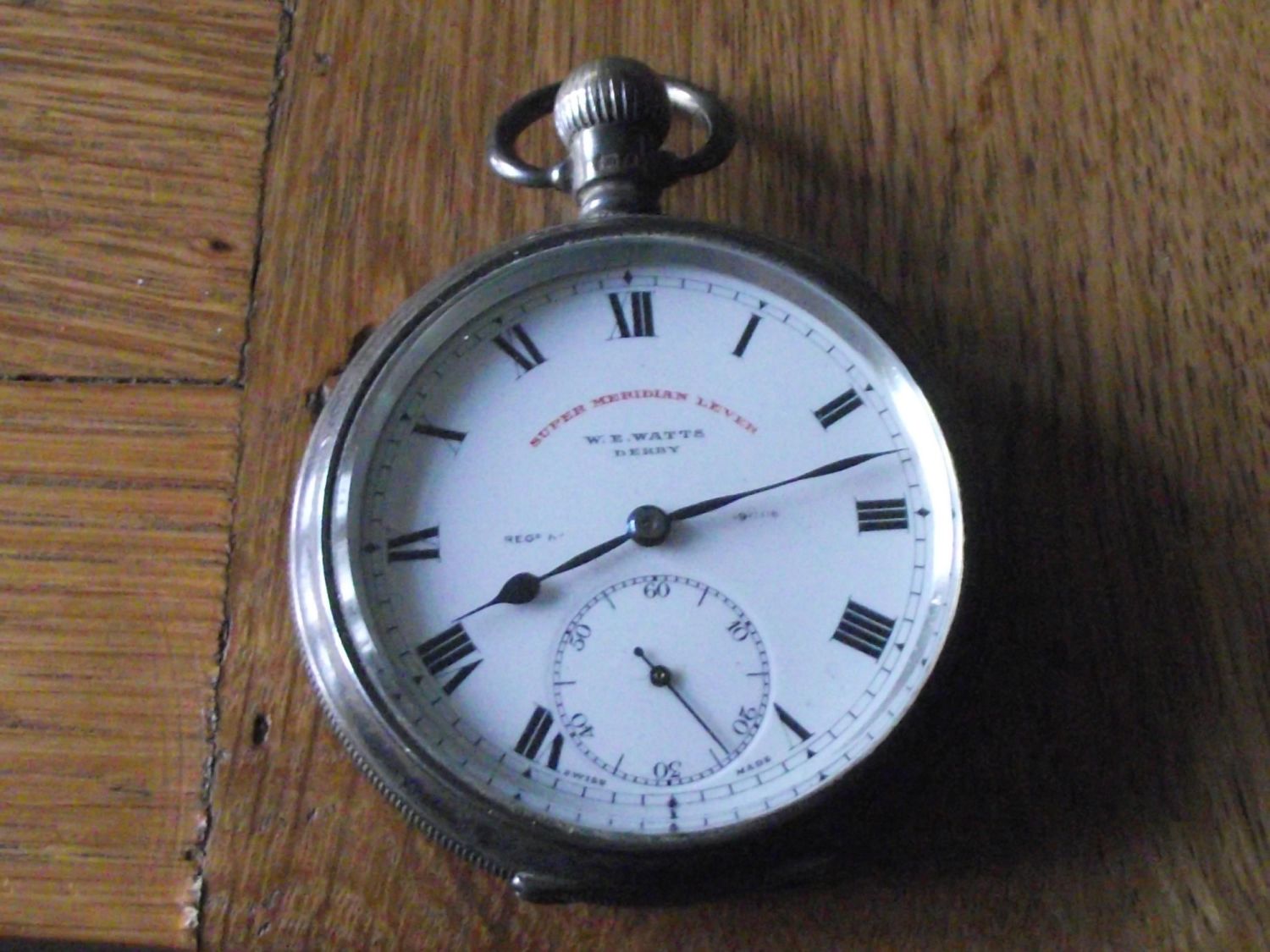 Rare Silver top wind super meridian lever pocket watch W E Watts Derby Birmingham 1925 ( working )
