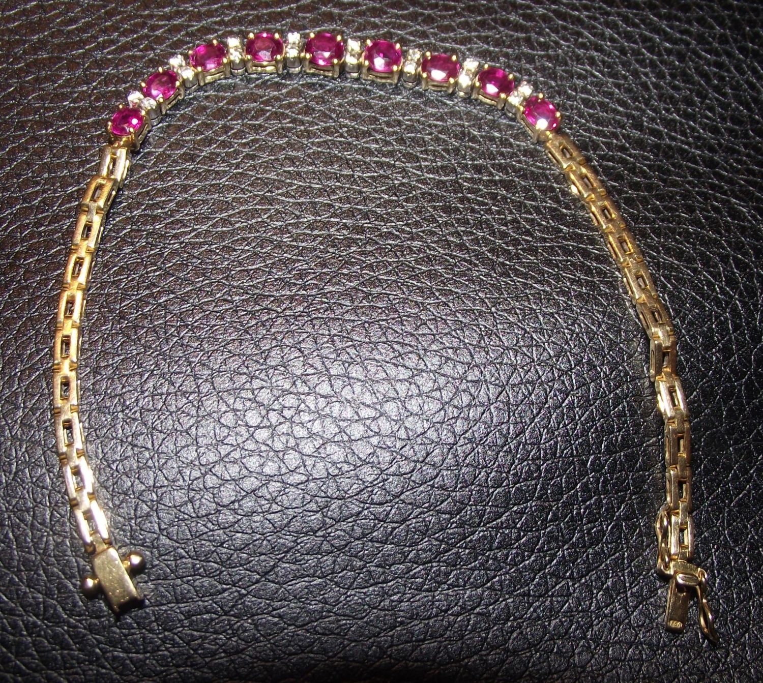 Superb outstanding quality 18ct gold fully hallmarked bracelet consisting of 9 oval shape rubies each separated with 2 quality diamonds (16 diamonds in total) 17cm in length Estimated 2ct ruby 5x3mm each approx. , 0.5ct diamonds 0.032 each approx.