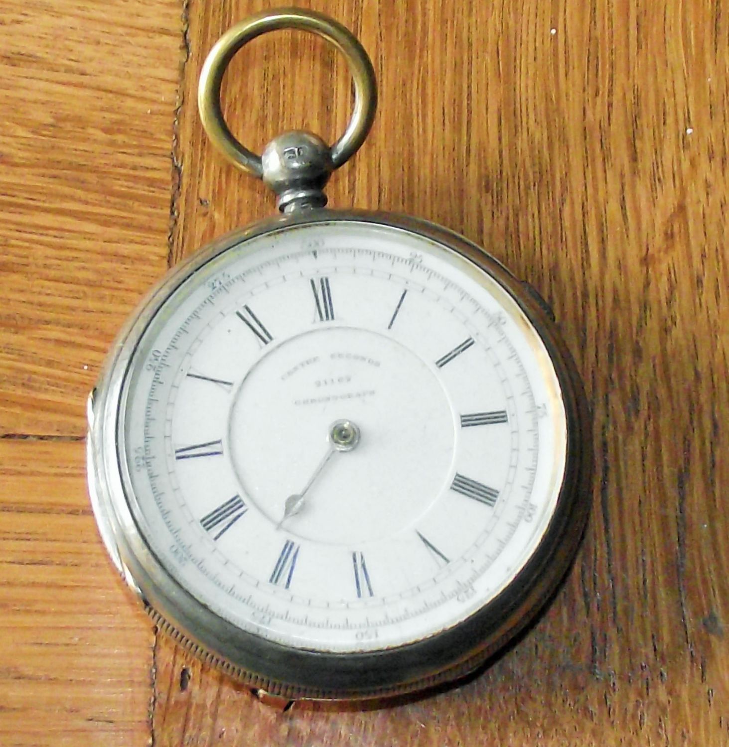 Silver Centre Seconds Chronograph pocket watch London 1885 Charles Chesterman (seen ticking missing minute & second hand ) 55mm approx. dia