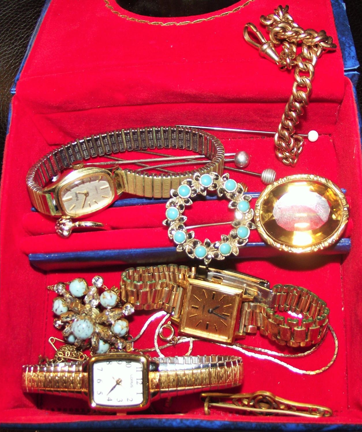 Collection of costume jewellery and watches inc. ladies Pulsar quartz ladies Lorus watch ,ladies Sekonda watch + plated watch chain , vintage brooches , chains ring etc
