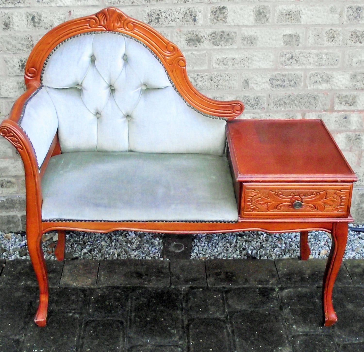 Vintage upholstered Telephone seat 36 in length