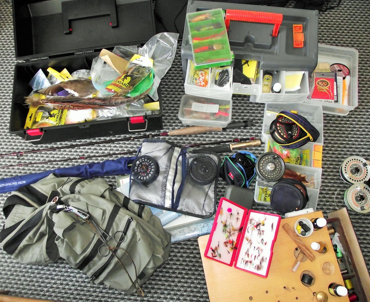 collection of fly fishing rods and reels & others + some fly tying equipment etc