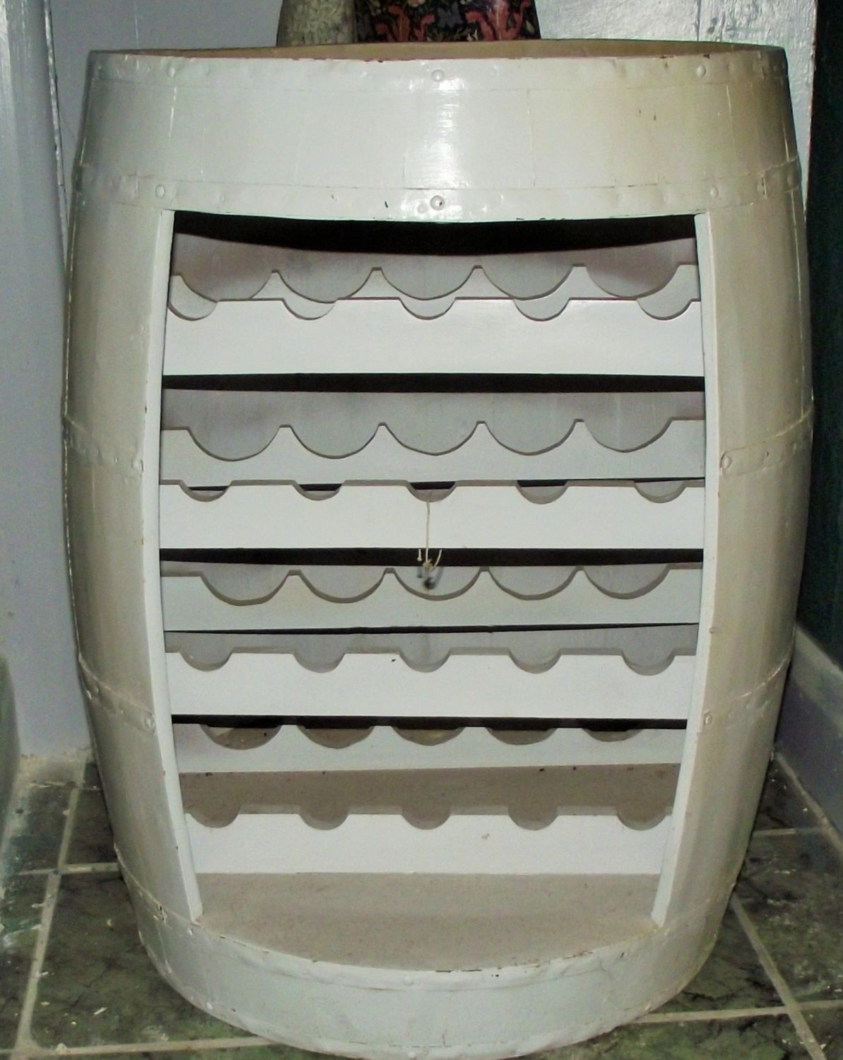 Large painted barrel wine rack