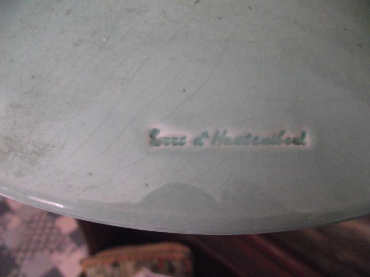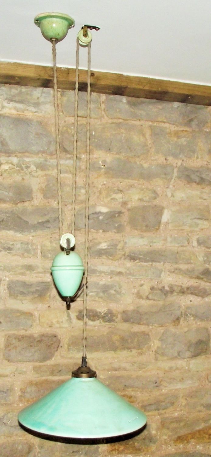 French 1930s ceramic rise and fall ceiling light ( slight damage to ceiling rose) signature impressed into shade (Eerre & Hautaulbaul)