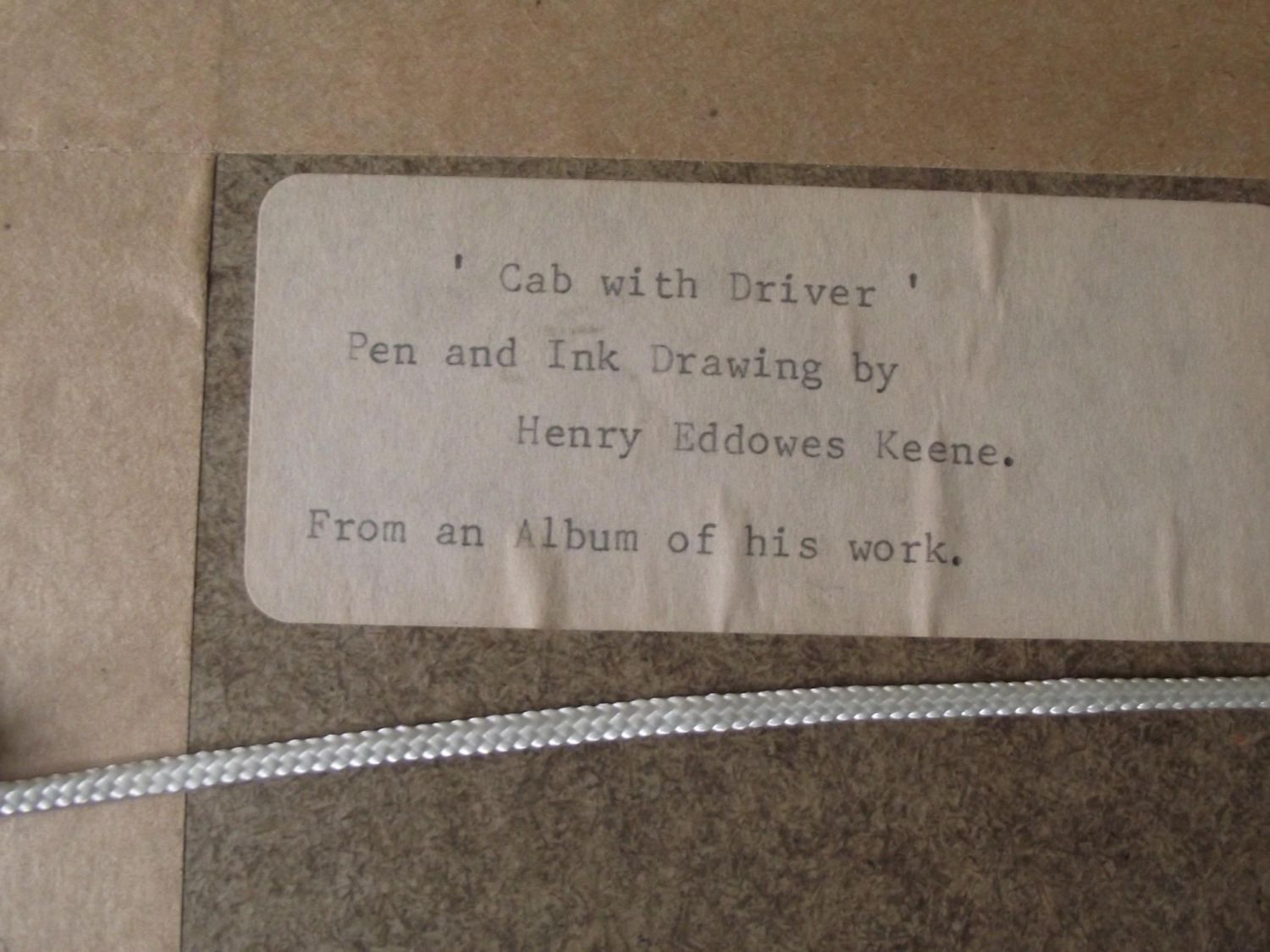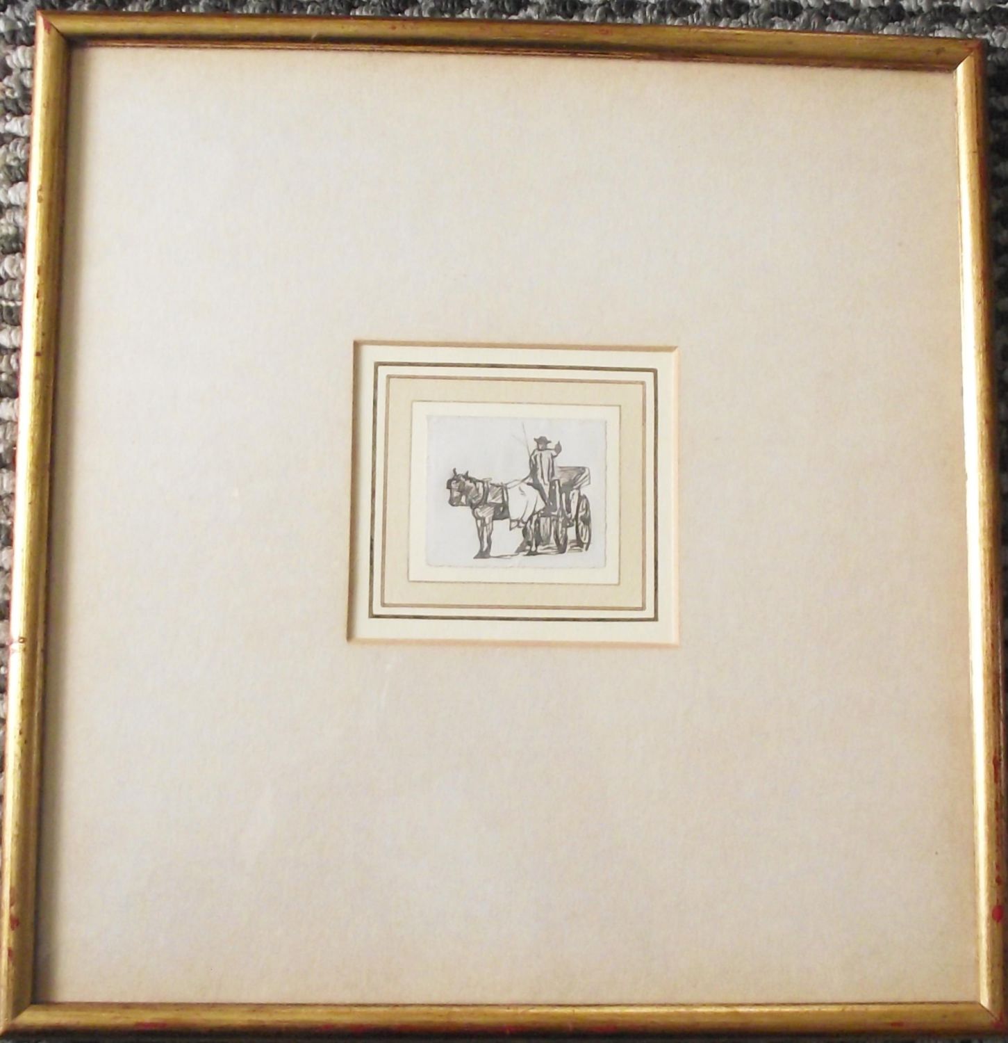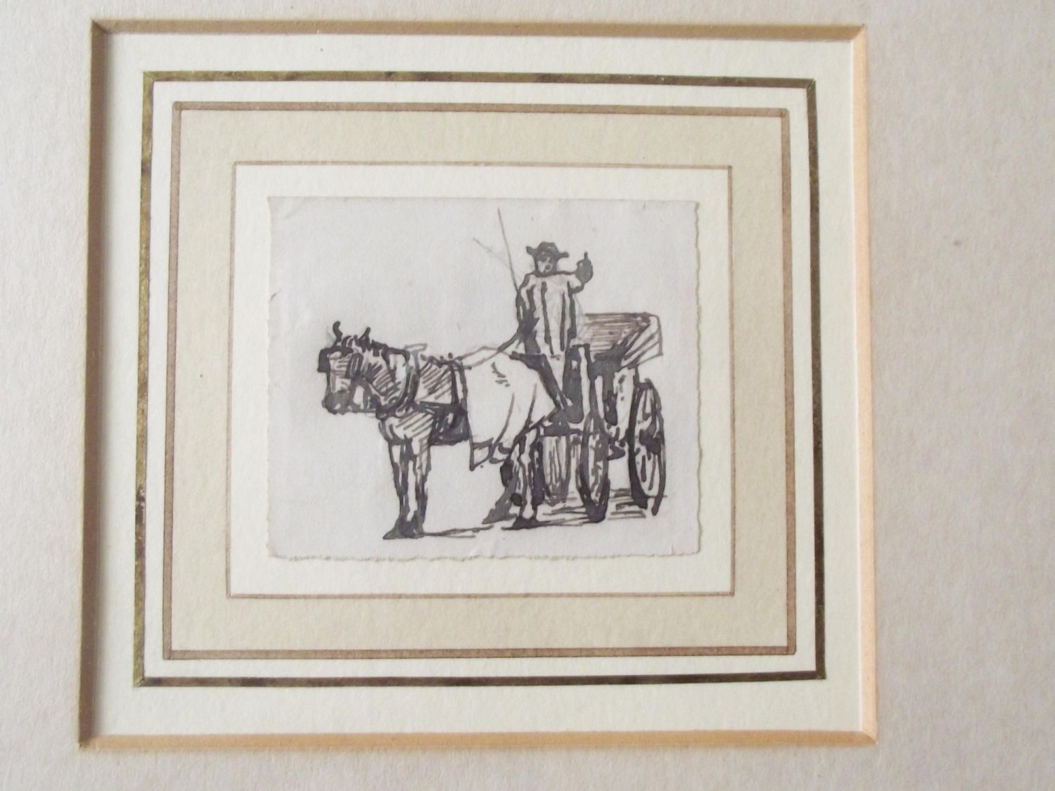 Henry Eddowes keene (British 1824-1909) Cab with Driver pen and ink drawing 7cm x 5cm framed 12.5 x 12.5 label to reverse