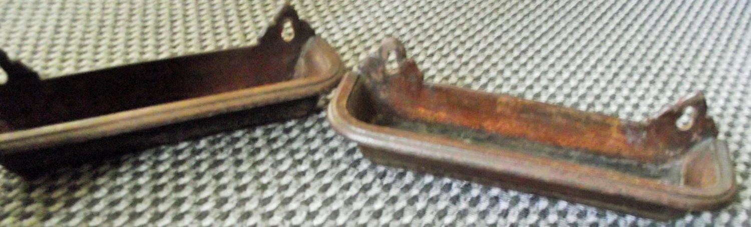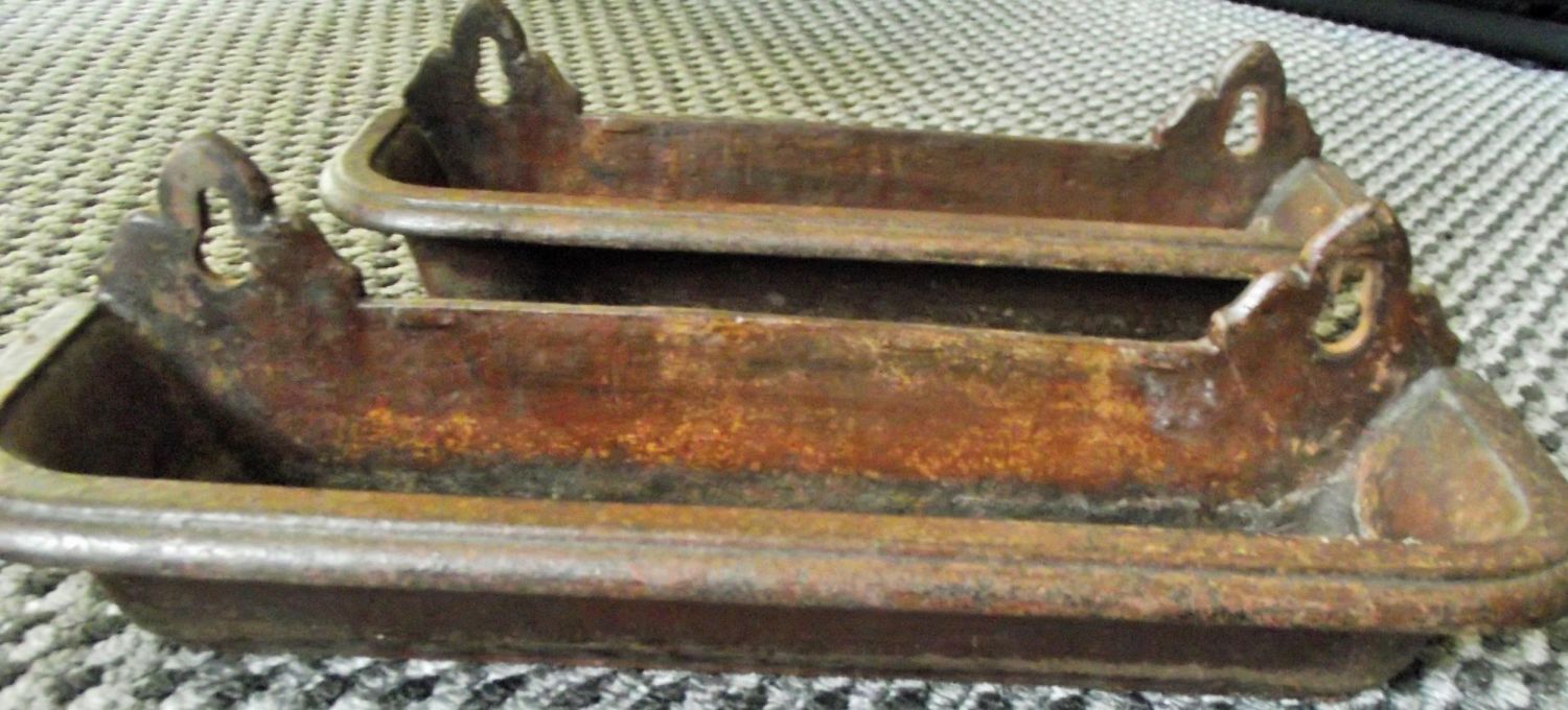Unusual pair of detailed miniature scale cast iron wall hanging planters in the form of a cattle feeding troughs 12 long 7 2 deep