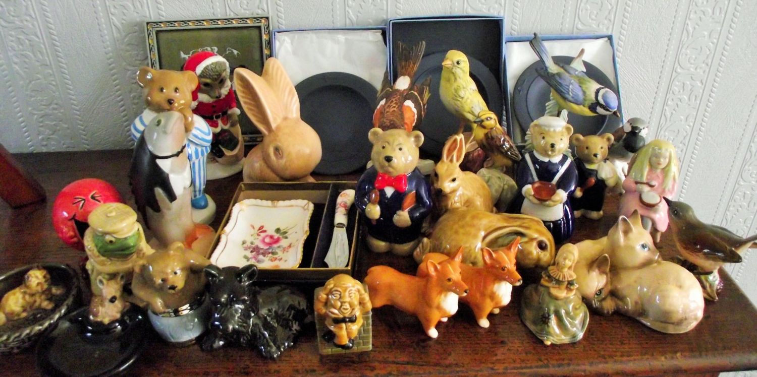 Mixed large lot of collectibles inc . 3x Wedgewood Concorde dishes + Beswick animals, Goebel birds , wade including rare bears etc.