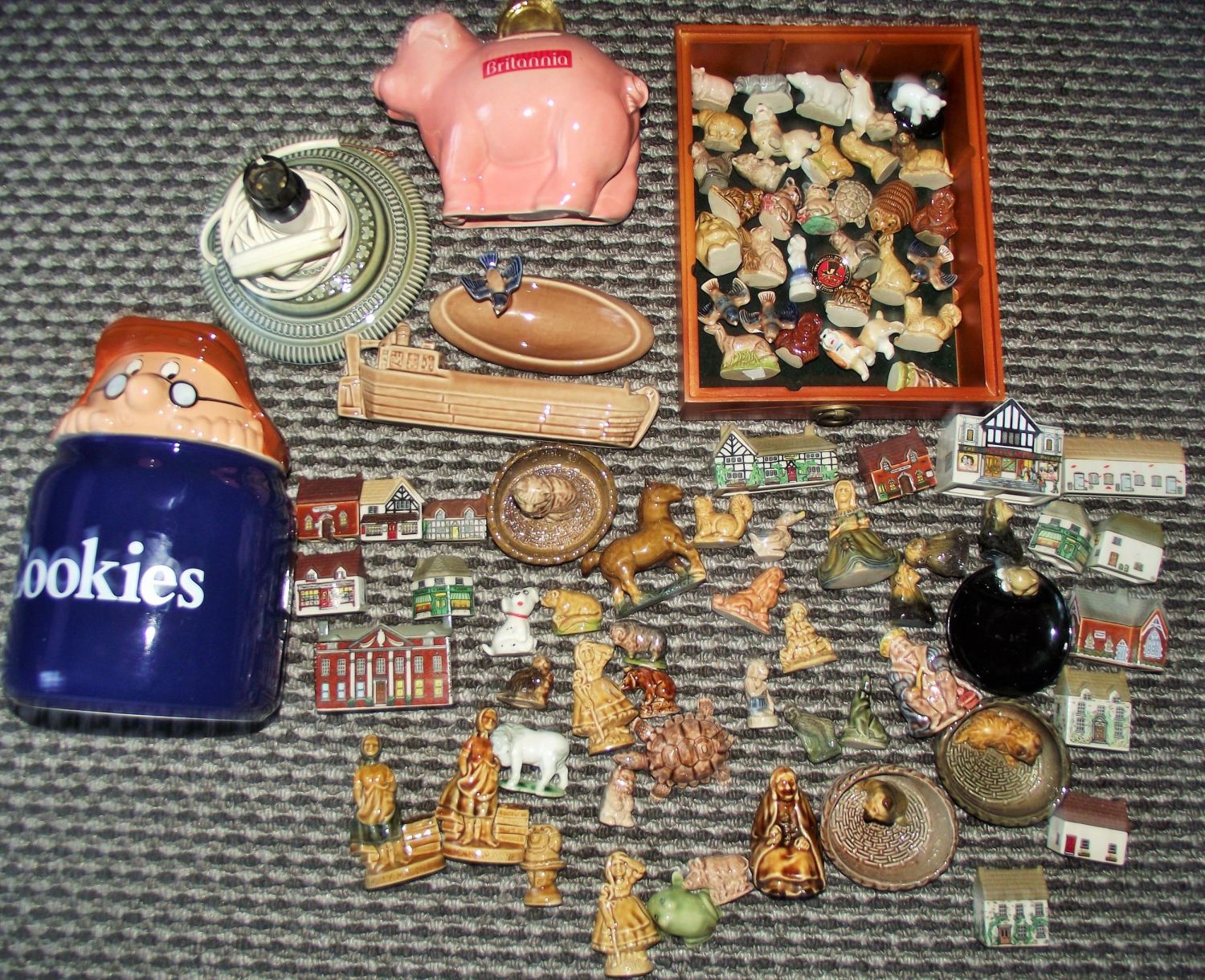 Large collection of Wade whimsies including some rare models ,Wade lamp base + Wade houses etc